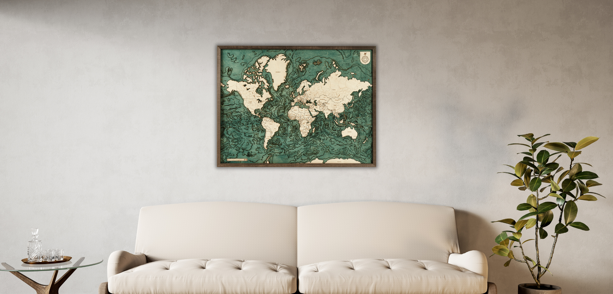 Our unique 3D wooden wall maps are brought to life by precise three-dimensional technology and patient handwork.